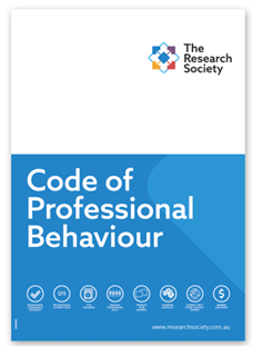 The full Code of Professional Behaviour can be obtained from the Research Society’s website – https://www.researchsociety.com.au/stay-informed/the-code/